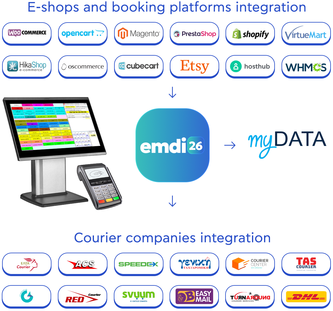 EMDI business software is easily connected to all e-shops, Greek courier companies and myDATA.