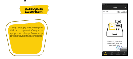 Με την επιτυχή διασύνδεση του POS με το ταμειακό σύστημα, το αριθμητικό πληκτρολόγιο απενεργοποιείται στην αρχική οθόνη, επιβεβαιώνοντας ότι η διασύνδεση ολοκληρώθηκε σωστά.