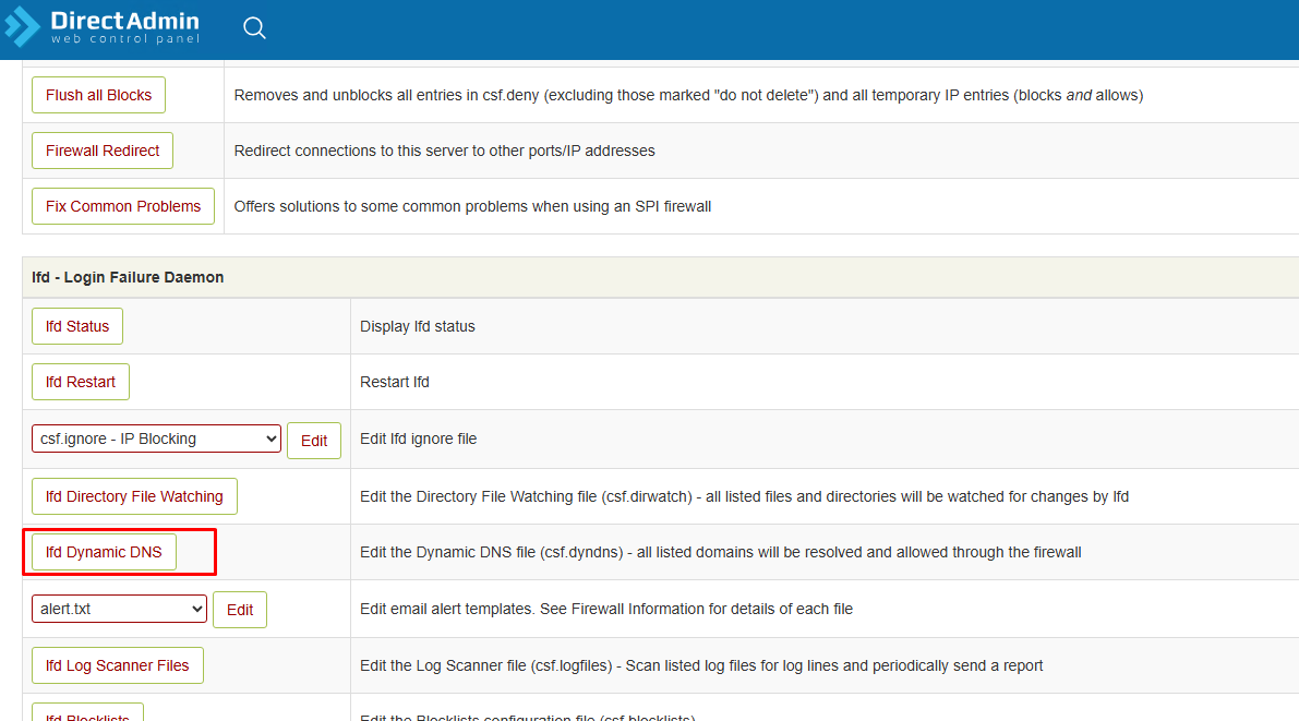 Στην ενότητα lfd – Login Failure Daemon, πάτα το κουμπί: lfd Dynamic DNS