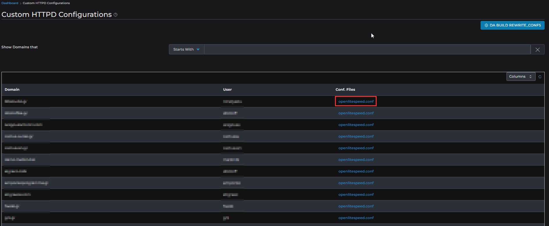 cd /usr/local/directadmin/custombuild ./build rewrite_confs systemctl restart lsws |