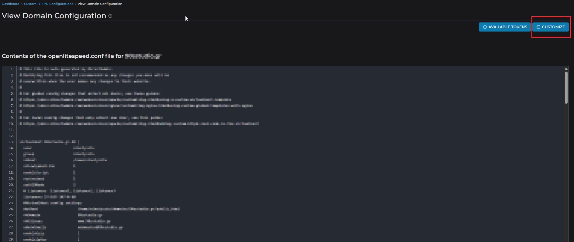Πηγάινουμε στο μενού Dashboard > Custom HTTPD Configurations.