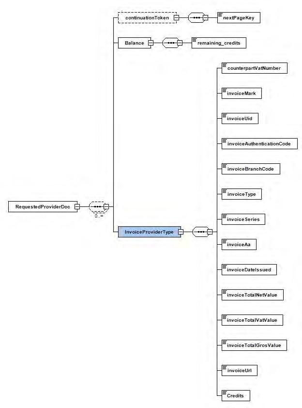 - Κύριο μέρος σε μορφή xml που περιέχει το στοιχείο InvoicesDoc, το οποίο περιέχει ένα ή περισσότερα παραστατικά. Η δομή του στοιχείου InvoicesDoc περιγράφεται ανά τύπο AadeBookInvoiceType