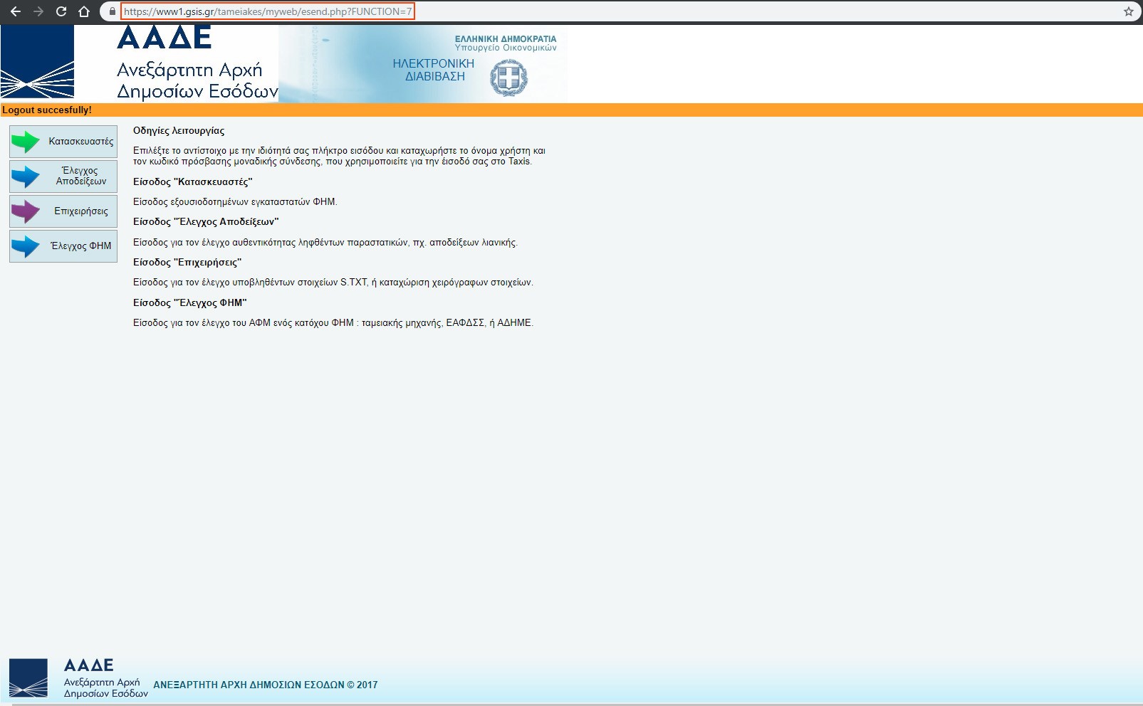 Το site για να λάβουμε τον κλειδάριθμο της σύνδεσης της ταμειακής με την ΑΑΔΕ βρίσκεται στο παρακάτω link: https://www1.gsis.gr/tameiakes/myweb/esend.php.