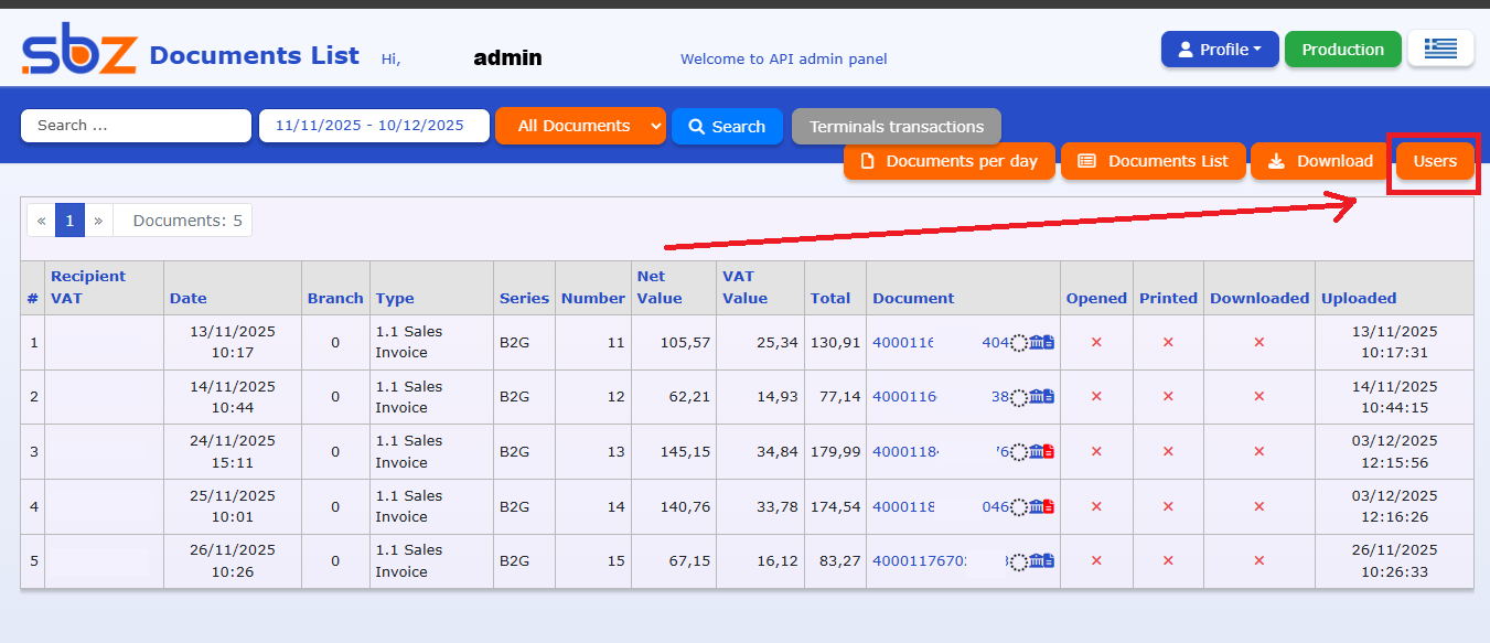 Additionally, by clicking on a customer’s VAT number, you may access their account directly to review their invoices or any other information you may need.