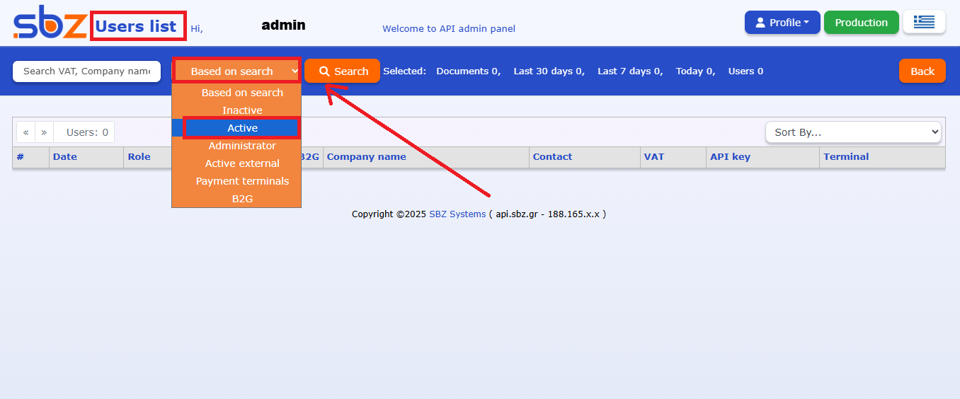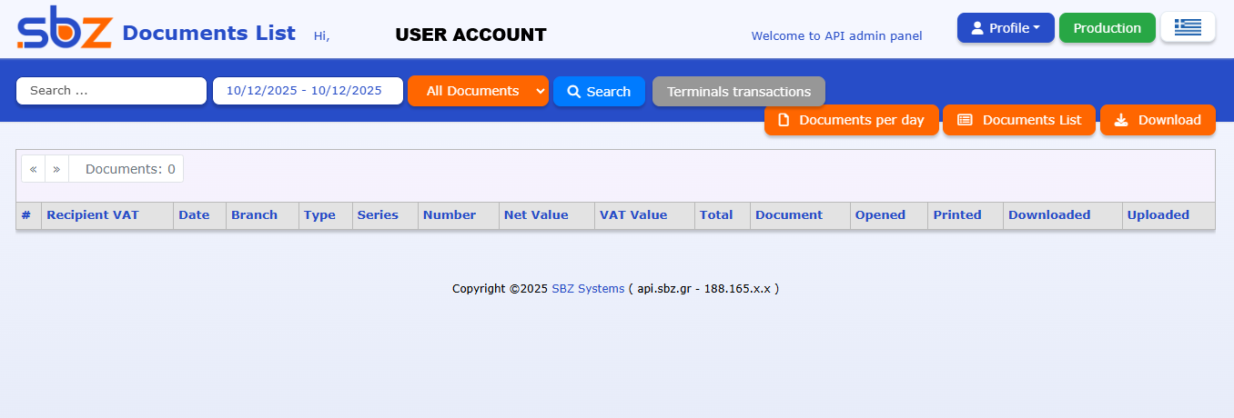 Please make sure you have an account on api.sbz.gr, even if your company does not use our services directly and only your clients do.