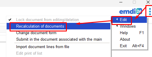 - Purchases/Sales 🔴: Click (3 dots) -> Edit -> Recalculate documents.