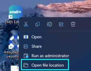 Local Installation: 1. Right-click the EMDI icon on your desktop and select “Open file location”. 2. Open the folder named “dbs”. 3. Copy your database file (e.g., EMDI.fdb) and rename the copy for the new year (e.g., 2026.fdb).
