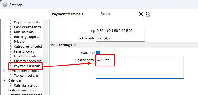 - For terminals that do not use preloaded transactions, you can simply enter the source name without the payment method code.